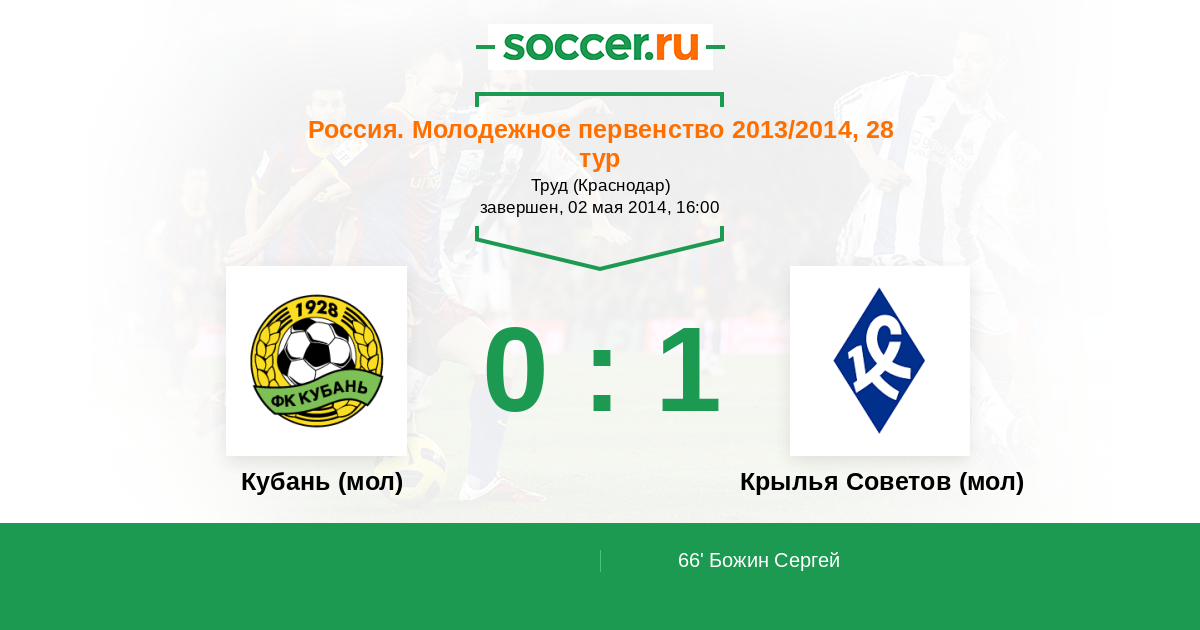 Протокол матча Кубань (мол) против Крылья Советов (мол)