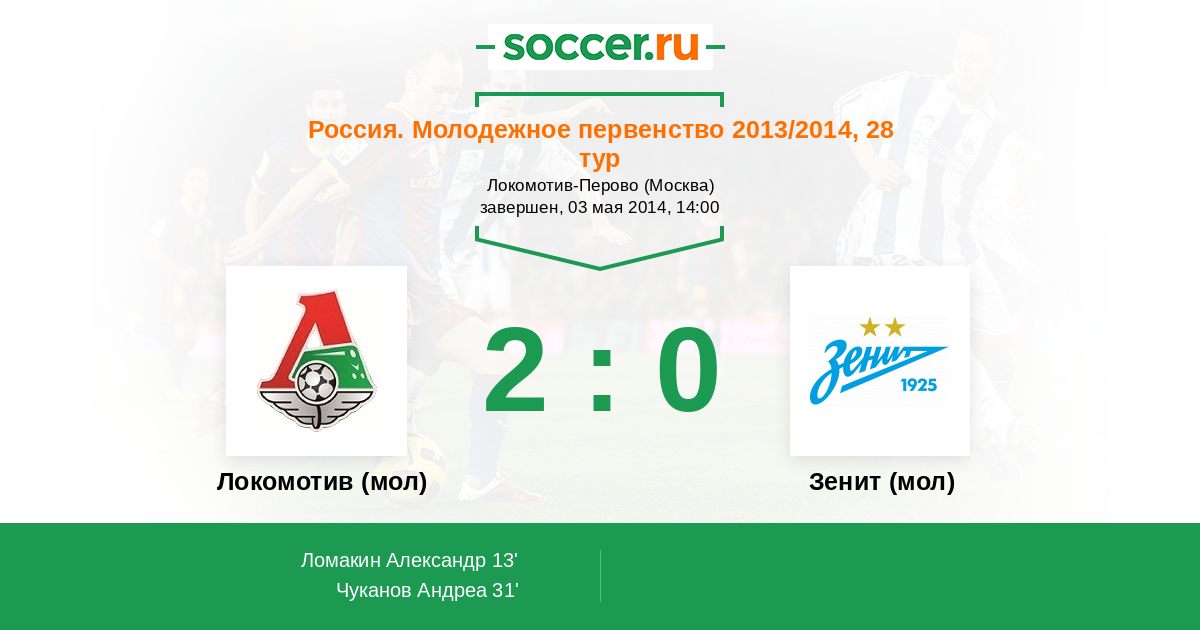 Протокол матча Локомотив (мол) против Зенит (мол)