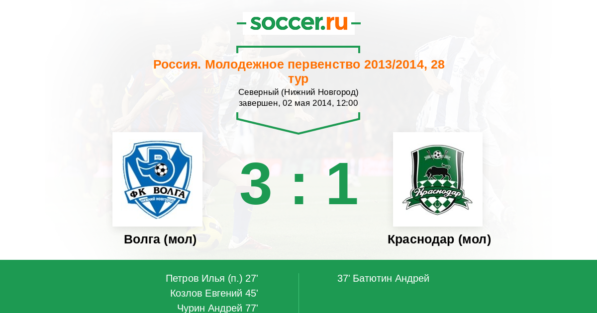Протокол матча Волга (мол) против Краснодар (мол)