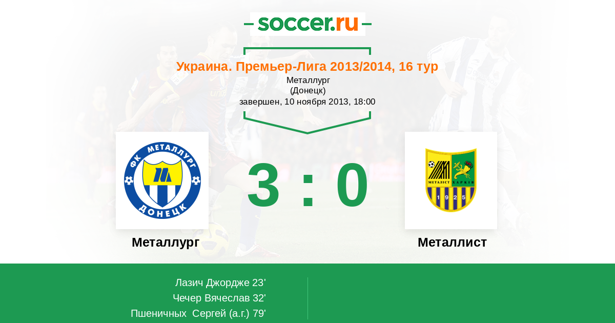 Протокол матча Металлург против Металлист