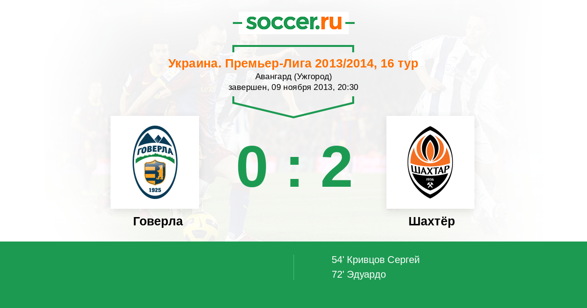 Протокол матча Говерла против Шахтёр