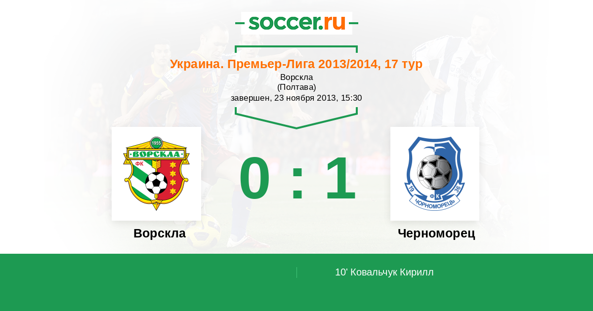 Протокол матча Ворскла против Черноморец