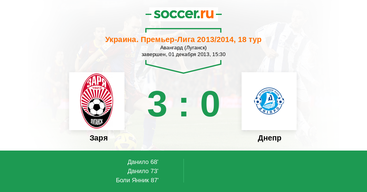 Протокол матча Заря против Днепр
