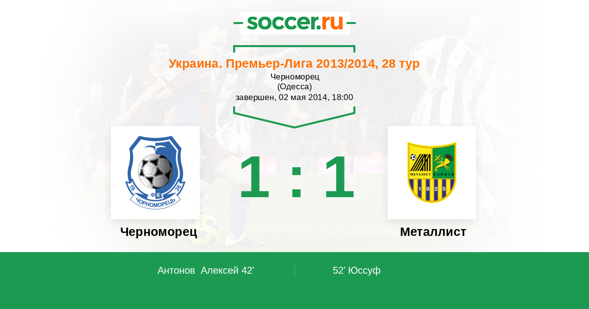 Протокол матча Черноморец против Металлист