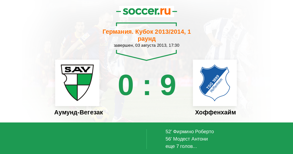 Протокол матча Аумунд-Вегезак против Хоффенхайм