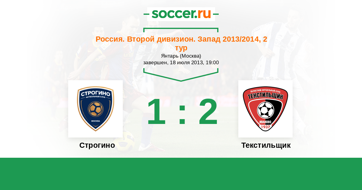 Россия. Вторая лига. Группа 2 12.07.2014 Строгино Логотип футбольный клуб Строгино (Москва) 2:0 Логотип футбольный клуб Текстильщик (Иваново) Текстильщик