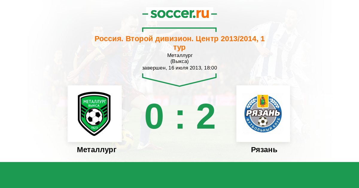 Россия. Вторая лига. Группа 3 25.07.2014 Рязань Логотип футбольный клуб Рязань 1:0 Логотип футбольный клуб Металлург (Выкса) Металлург