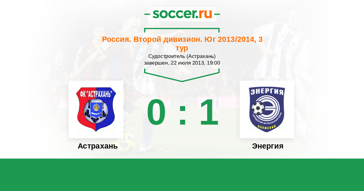 Россия. Вторая лига. Группа 1 13.07.2011 Энергия Логотип футбольный клуб Энергия (Волжский) 2:4 Логотип футбольный клуб Астрахань Астрахань