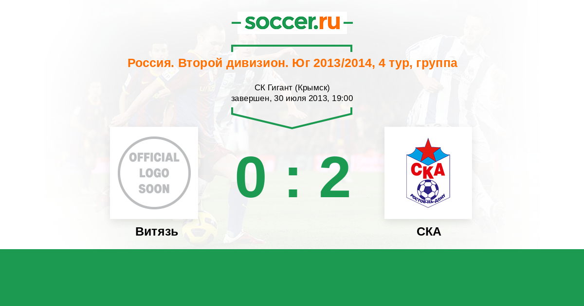 Россия. Вторая лига. Группа 1 26.10.2013 СКА Логотип футбольный клуб СКА (Ростов-на-Дону) 0:0 Логотип футбольный клуб Витязь (Крымск) Витязь