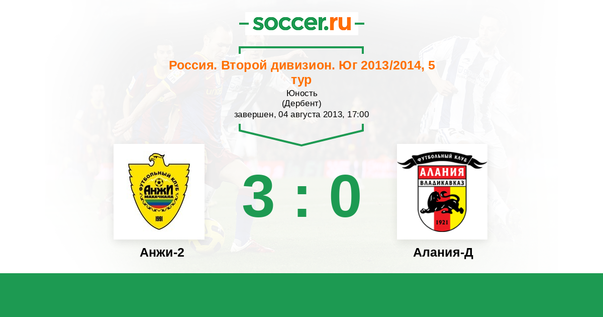 Россия. Вторая лига. Группа 1 01.11.2013 Алания-Д Логотип футбольный клуб Алания-Д (Владикавказ) 1:0 Логотип футбольный клуб Дагдизель (Махачкала) Дагдизель
