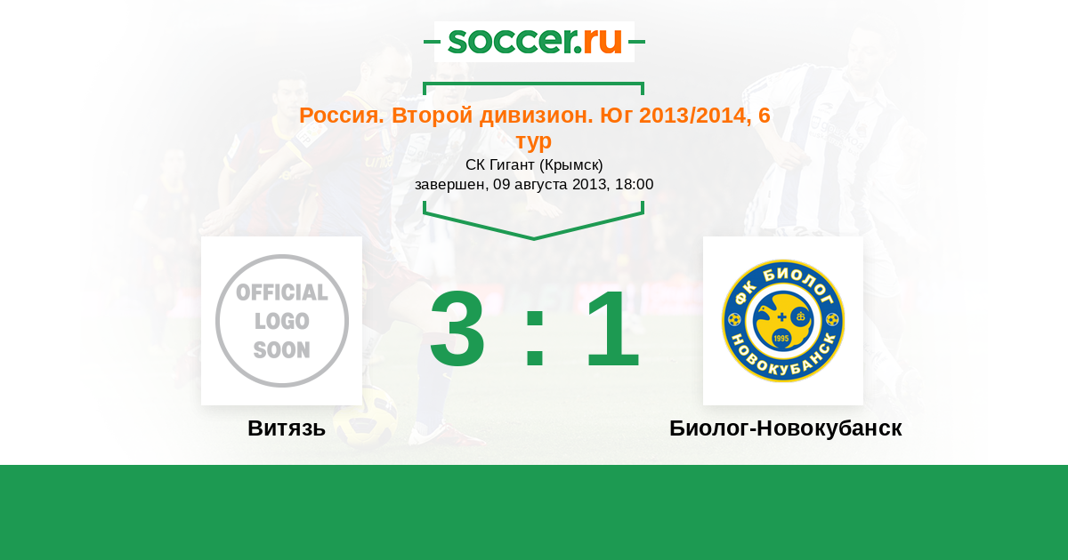 Россия. Вторая лига. Группа 1 07.11.2013 Биолог-Новокубанск Логотип футбольный клуб Биолог-Новокубанск 1:3 Логотип футбольный клуб Витязь (Крымск) Витязь