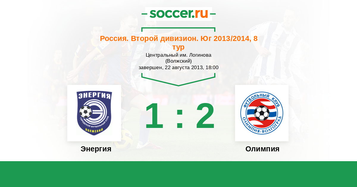 Россия. Вторая лига. Группа 1 10.04.2014 Олимпия Логотип футбольный клуб Олимпия (Волгоград) 2:1 Логотип футбольный клуб Энергия (Волжский) Энергия