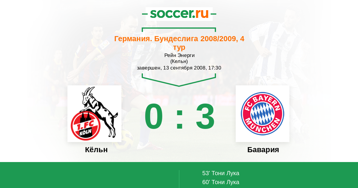 Протокол матча Кёльн против Бавария
