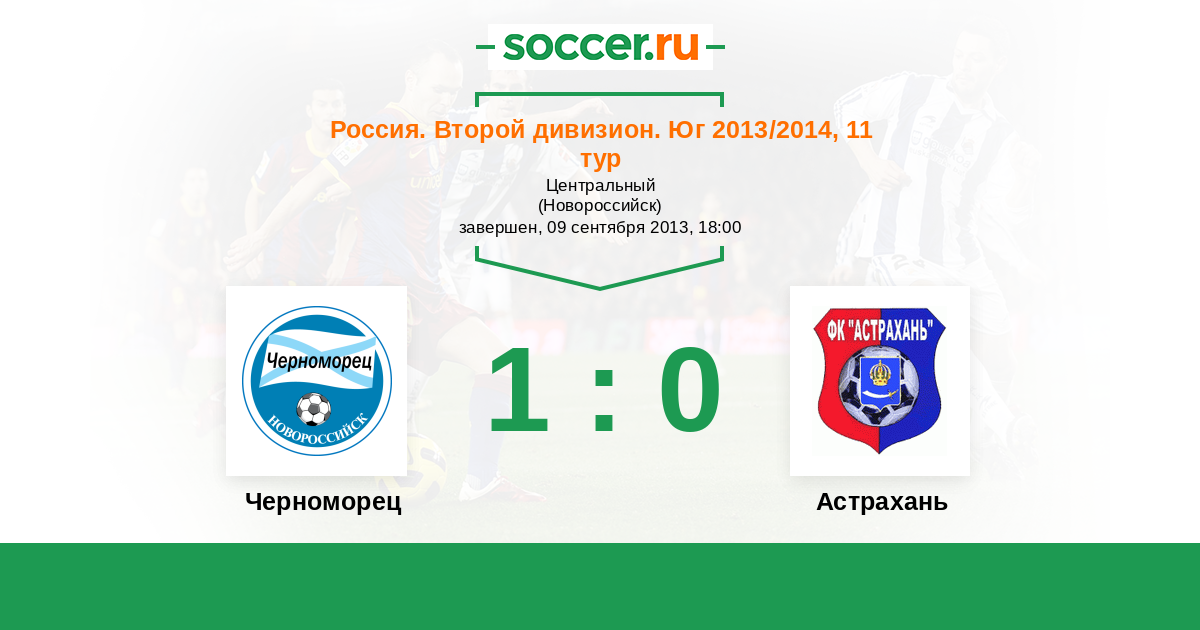 Россия. Вторая лига. Группа 1 13.09.2015 Астрахань Логотип футбольный клуб Астрахань 1:0 Логотип футбольный клуб Черноморец (Новороссийск) Черноморец