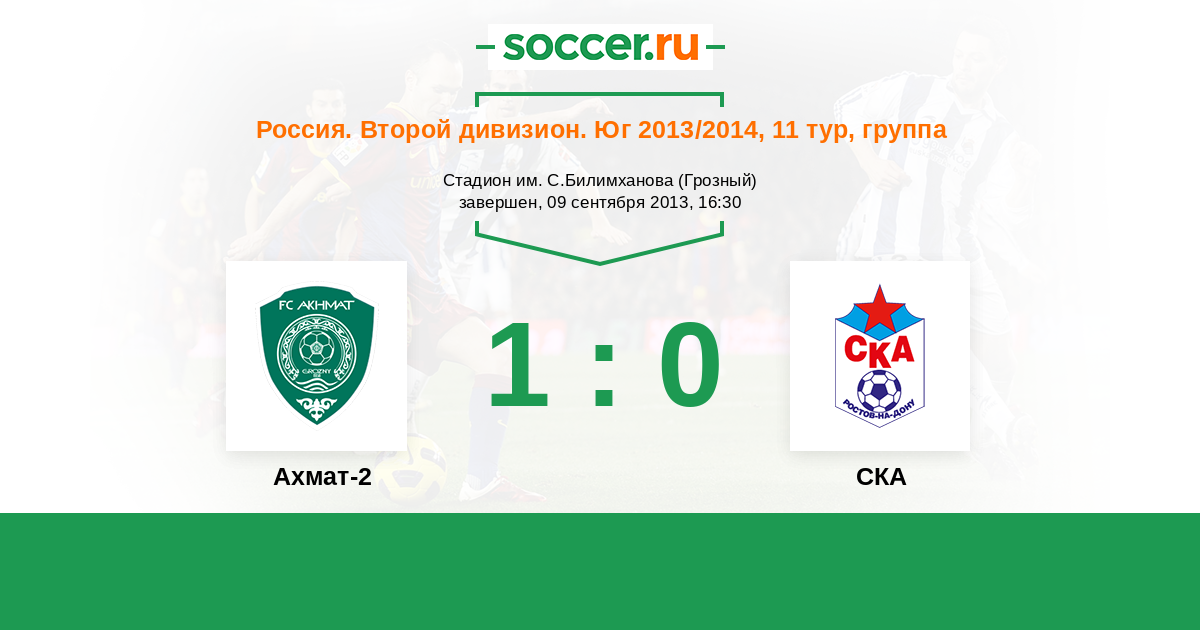 Россия. Вторая лига. Группа 1 26.04.2014 СКА Логотип футбольный клуб СКА (Ростов-на-Дону) 0:0 Логотип футбольный клуб Ахмат-2 (Грозный) Ахмат-2