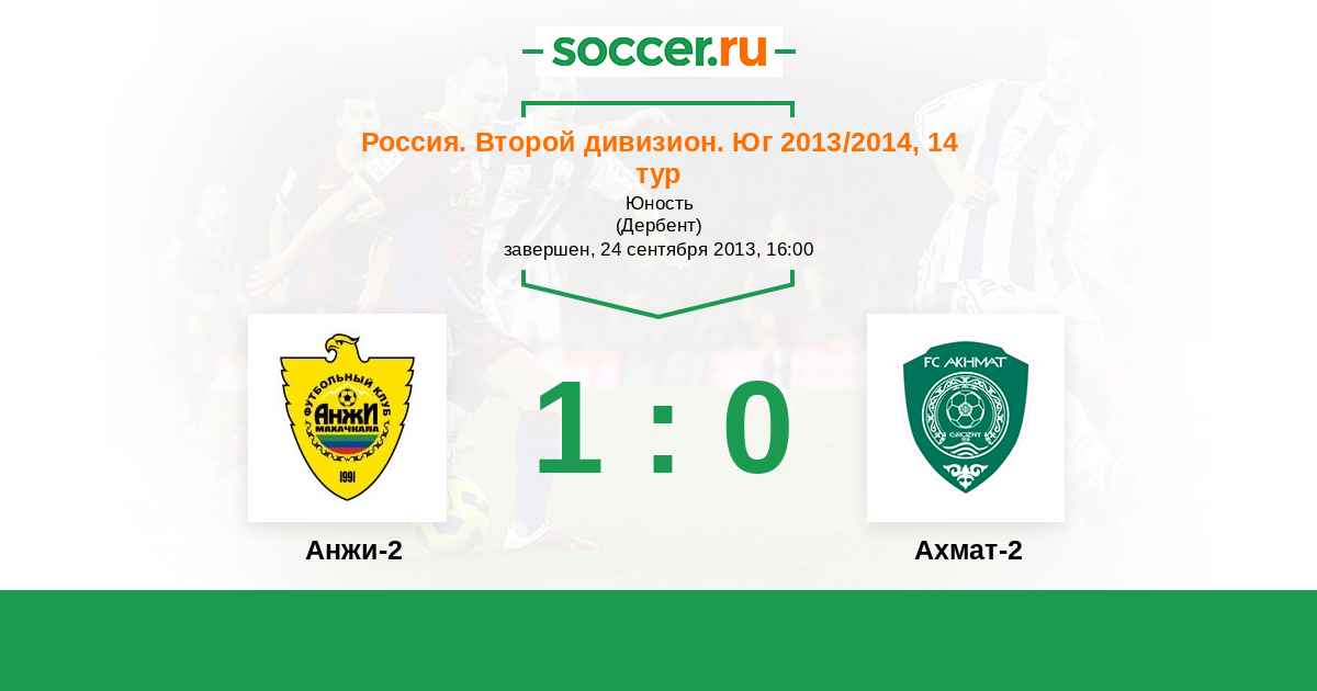 Россия. Вторая лига. Группа 1 25.10.2014 Ахмат-2 Логотип футбольный клуб Ахмат-2 (Грозный) 1:1 Логотип футбольный клуб Анжи-2 (Махачкала) Анжи-2