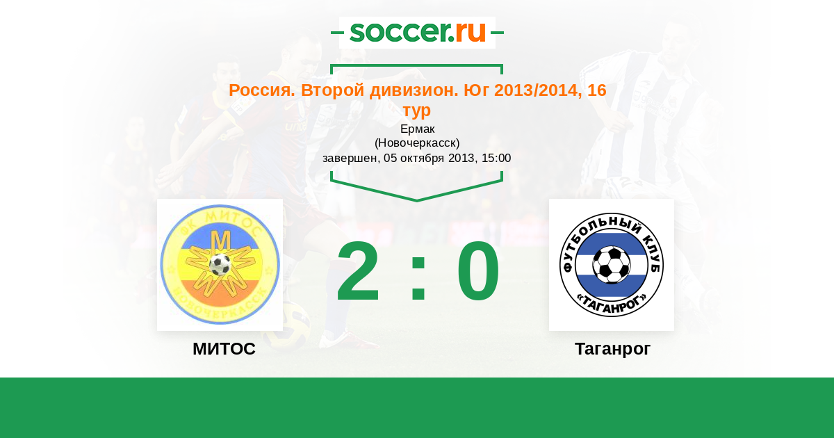 Россия. Вторая лига. Группа 1 06.11.2014 МИТОС Логотип футбольный клуб МИТОС (Новочеркасск) 1:0 Логотип футбольный клуб Таганрог Таганрог