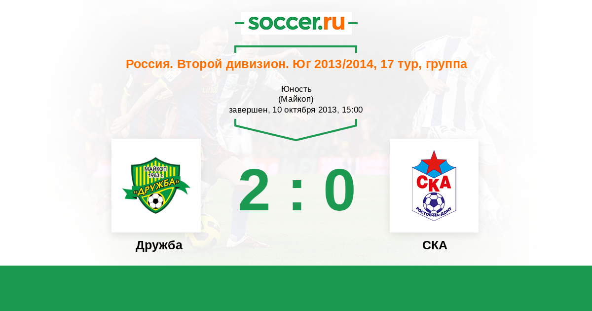 Россия. Вторая лига. Группа 1 31.05.2014 СКА Логотип футбольный клуб СКА (Ростов-на-Дону) 1:1 Логотип футбольный клуб Дружба (Майкоп) Дружба