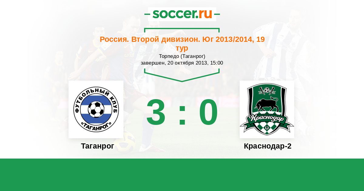 Россия. Вторая лига. Группа 1 22.07.2013 Краснодар-2 Логотип футбольный клуб Краснодар-2 0:0 Логотип футбольный клуб Таганрог Таганрог