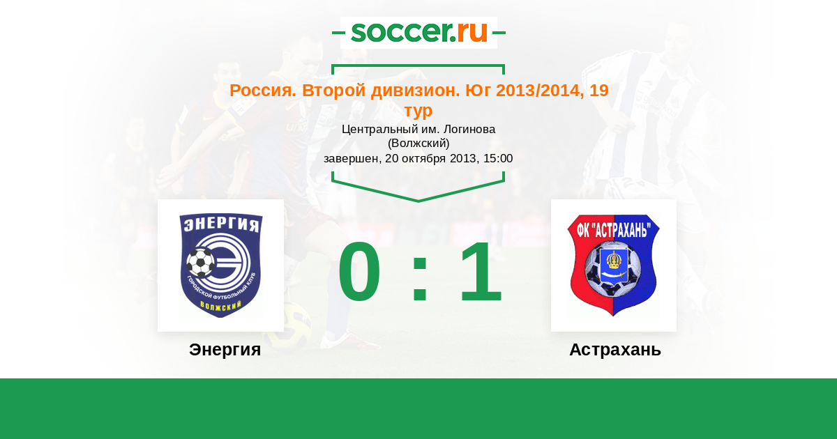 Россия. Вторая лига. Группа 1 22.07.2013 Астрахань Логотип футбольный клуб Астрахань 0:1 Логотип футбольный клуб Энергия (Волжский) Энергия