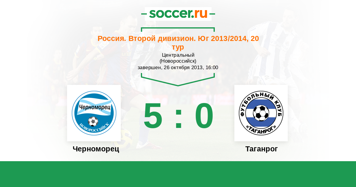 Россия. Вторая лига. Группа 1 30.07.2013 Таганрог Логотип футбольный клуб Таганрог 2:1 Логотип футбольный клуб Черноморец (Новороссийск) Черноморец