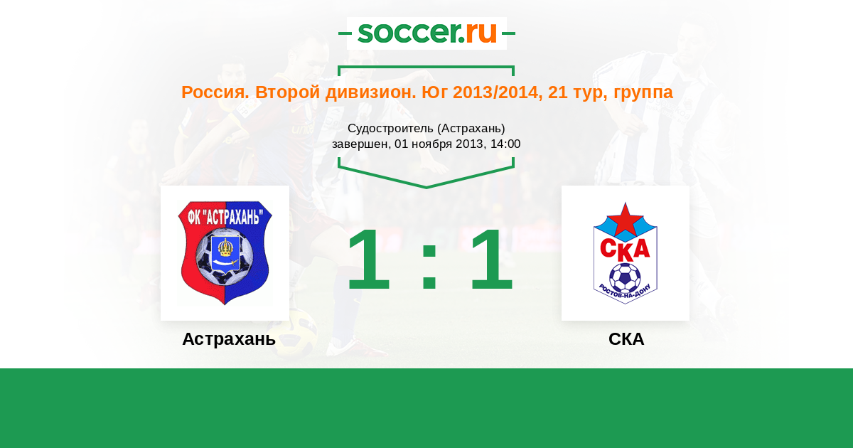Россия. Вторая лига. Группа 1 25.10.2010 СКА Логотип футбольный клуб СКА (Ростов-на-Дону) 1:1 Логотип футбольный клуб Астрахань Астрахань