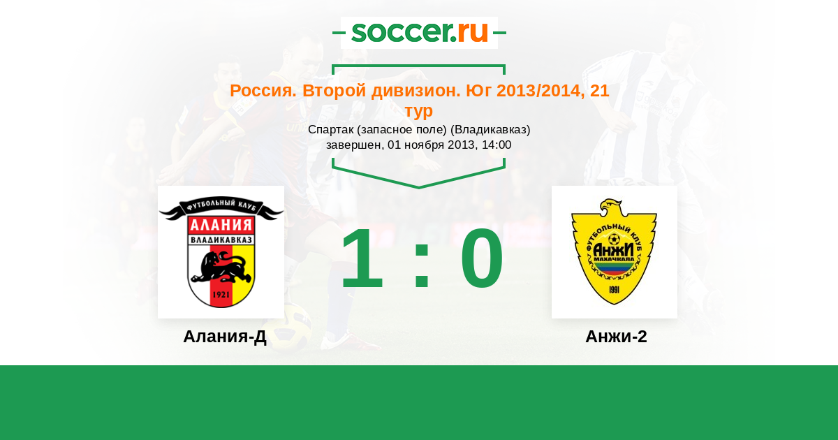 Россия. Вторая лига. Группа 1 26.04.2014 Алания-Д Логотип футбольный клуб Алания-Д (Владикавказ) 1:3 Логотип футбольный клуб Олимпия (Волгоград) Олимпия
