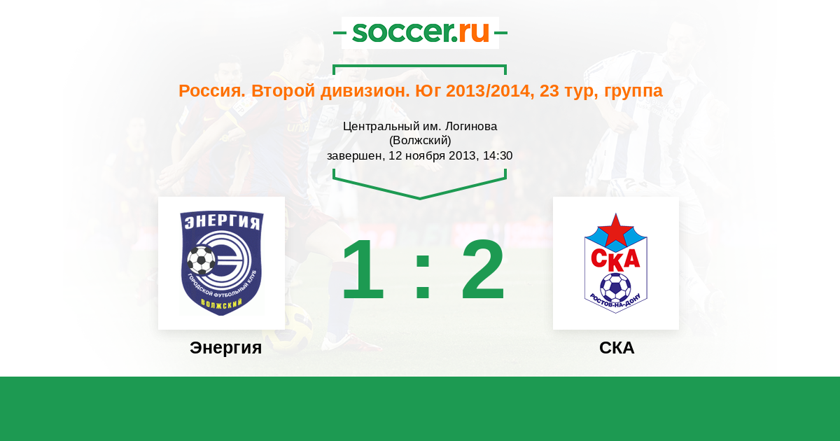 Россия. Вторая лига. Группа 1 11.10.2012 Энергия Логотип футбольный клуб Энергия (Волжский) 4:0 Логотип футбольный клуб СКА (Ростов-на-Дону) СКА