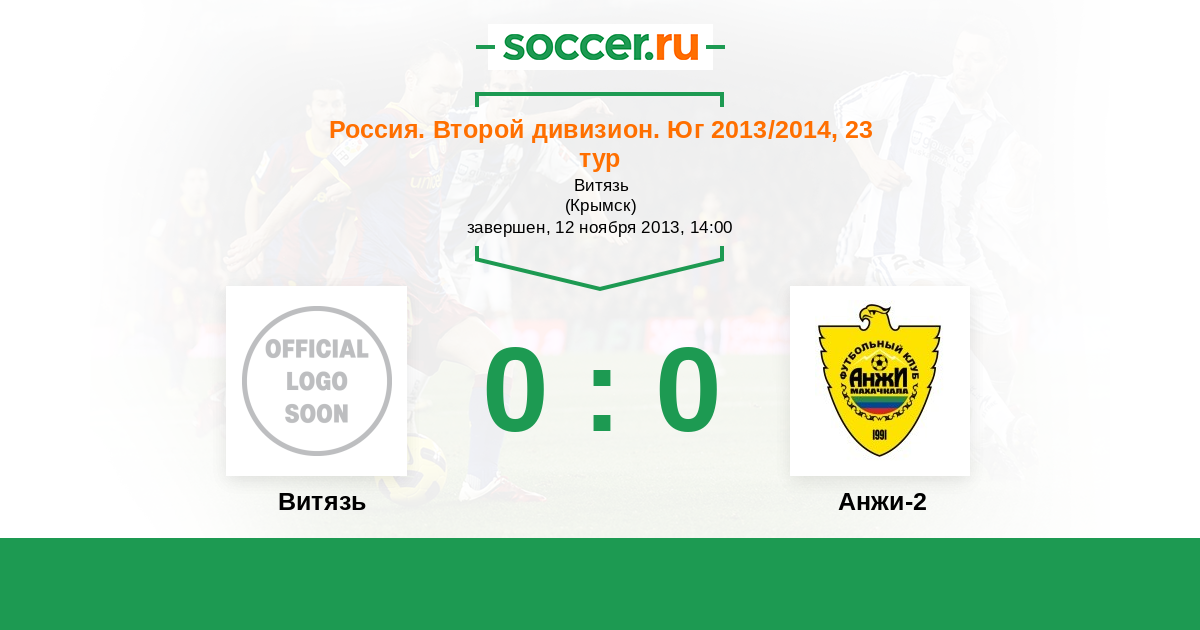 Россия. Вторая лига. Группа 1 17.08.2013 Дагдизель Логотип футбольный клуб Дагдизель (Махачкала) 2:2 Логотип футбольный клуб Витязь (Крымск) Витязь