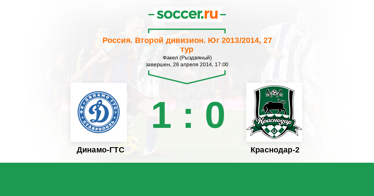 Россия. Вторая лига. Группа 1 10.05.2015 Динамо-ГТС Логотип футбольный клуб Динамо-ГТС (Ставрополь) 1:0 Логотип футбольный клуб Дружба (Майкоп) Дружба