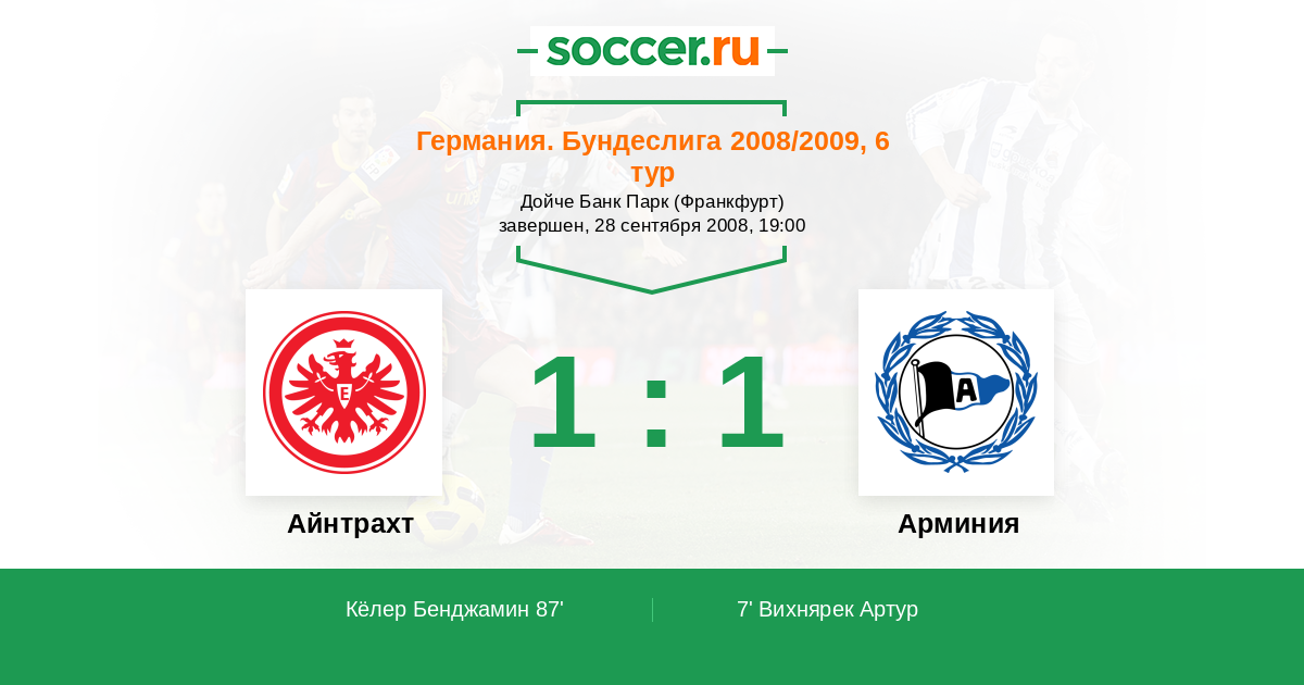 Протокол матча Айнтрахт против Арминия