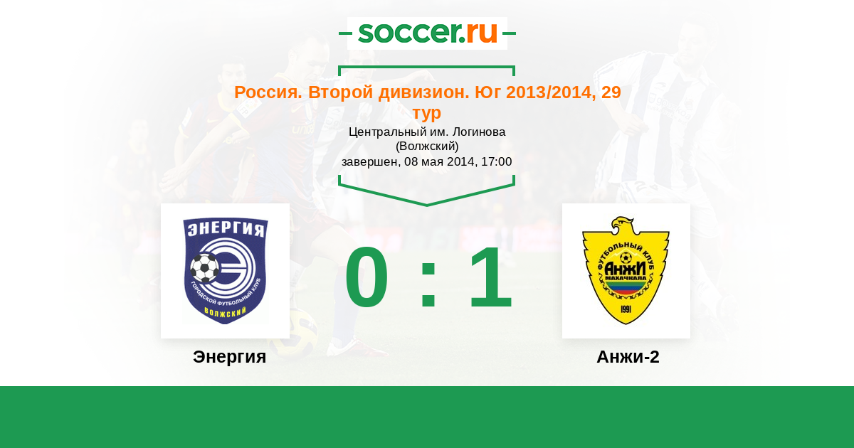 Россия. Вторая лига. Группа 1 19.05.2014 Энергия Логотип футбольный клуб Энергия (Волжский) 2:4 Логотип футбольный клуб Ахмат-2 (Грозный) Ахмат-2