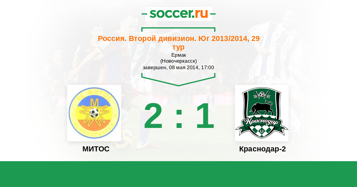 Россия. Вторая лига. Группа 1 17.05.2016 МИТОС Логотип футбольный клуб МИТОС (Новочеркасск) 1:5 Логотип футбольный клуб Краснодар-2 Краснодар-2