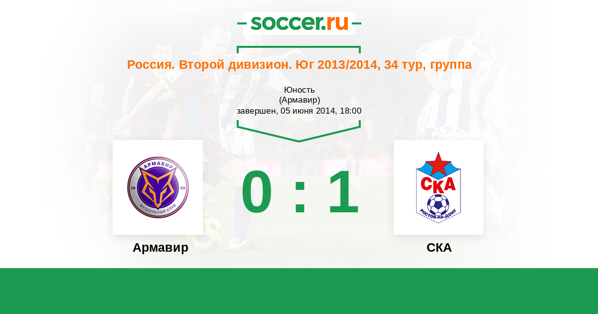 Россия. Вторая лига. Группа 1 14.05.2017 СКА Логотип футбольный клуб СКА (Ростов-на-Дону) 0:1 Логотип футбольный клуб Армавир Армавир