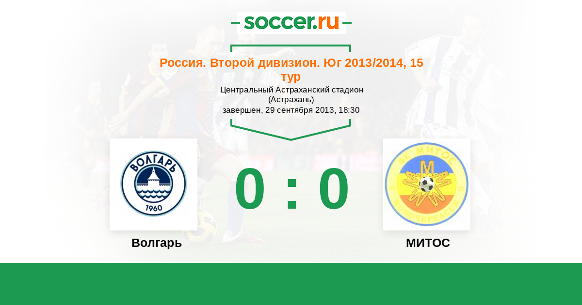 Россия. Вторая лига. Группа 1 31.05.2013 МИТОС Логотип футбольный клуб МИТОС (Новочеркасск) 2:1 Логотип футбольный клуб Волгарь (Астрахань) Волгарь