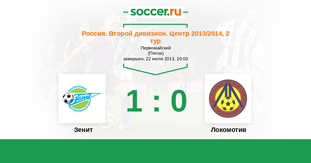 Россия. Вторая лига. Группа 3 10.10.2013 Локомотив Логотип футбольный клуб Локомотив (Лиски) 0:0 Логотип футбольный клуб Зенит (Пенза) Зенит