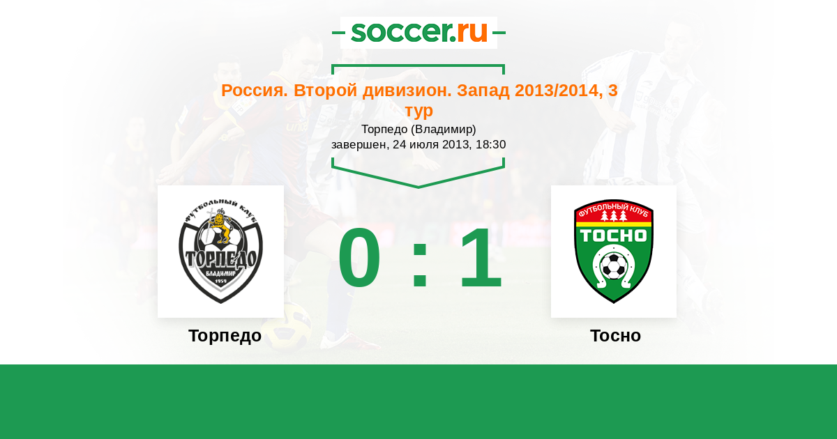 Россия. Вторая лига. Группа 2 24.05.2014 Тосно Логотип футбольный клуб Тосно 6:1 Логотип футбольный клуб Торпедо (Владимир) Торпедо