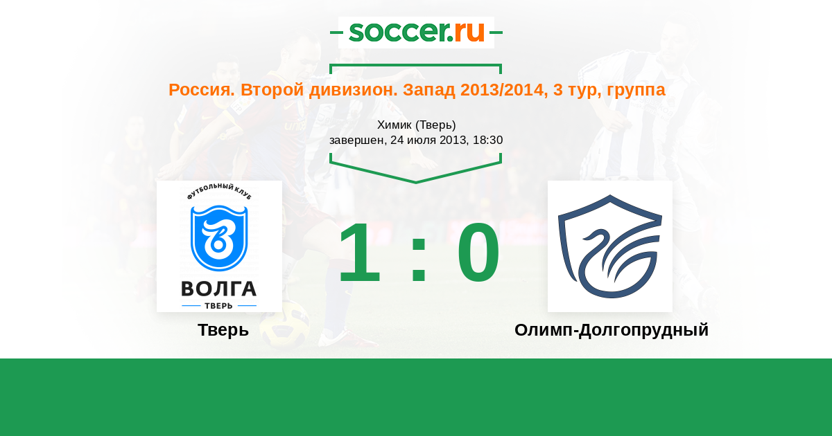 Россия. Вторая лига. Группа 2 24.05.2014 Долгопрудный Логотип футбольный клуб Долгопрудный 4:0 Логотип футбольный клуб Тверь Тверь