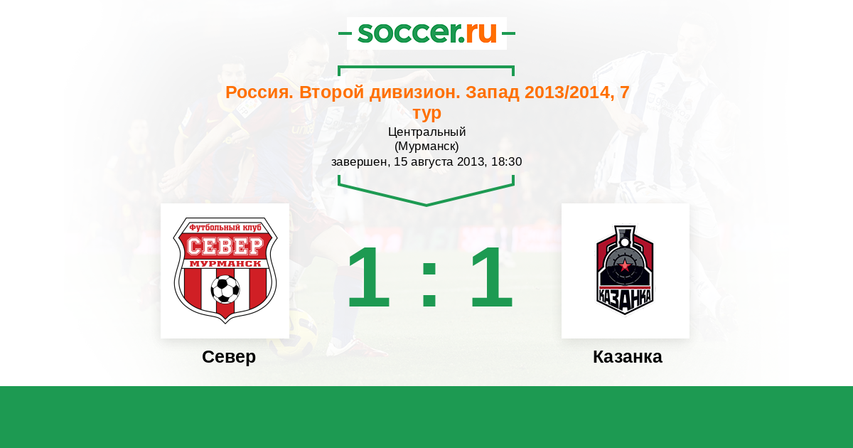 Россия. Вторая лига. Группа 2 24.05.2014 Север Логотип футбольный клуб Север (Мурманск) 0:0 Логотип футбольный клуб Знамя Труда (Орехово-Зуево) Знамя Труда