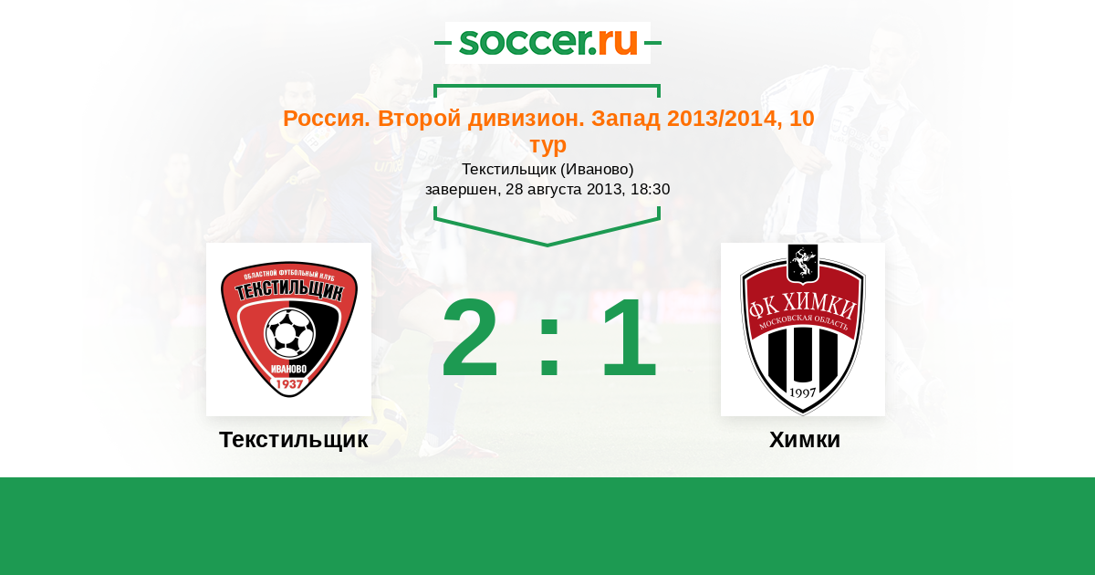 Россия. Вторая лига. Группа 2 18.07.2014 Текстильщик Логотип футбольный клуб Текстильщик (Иваново) 1:1 Логотип футбольный клуб Химки Химки