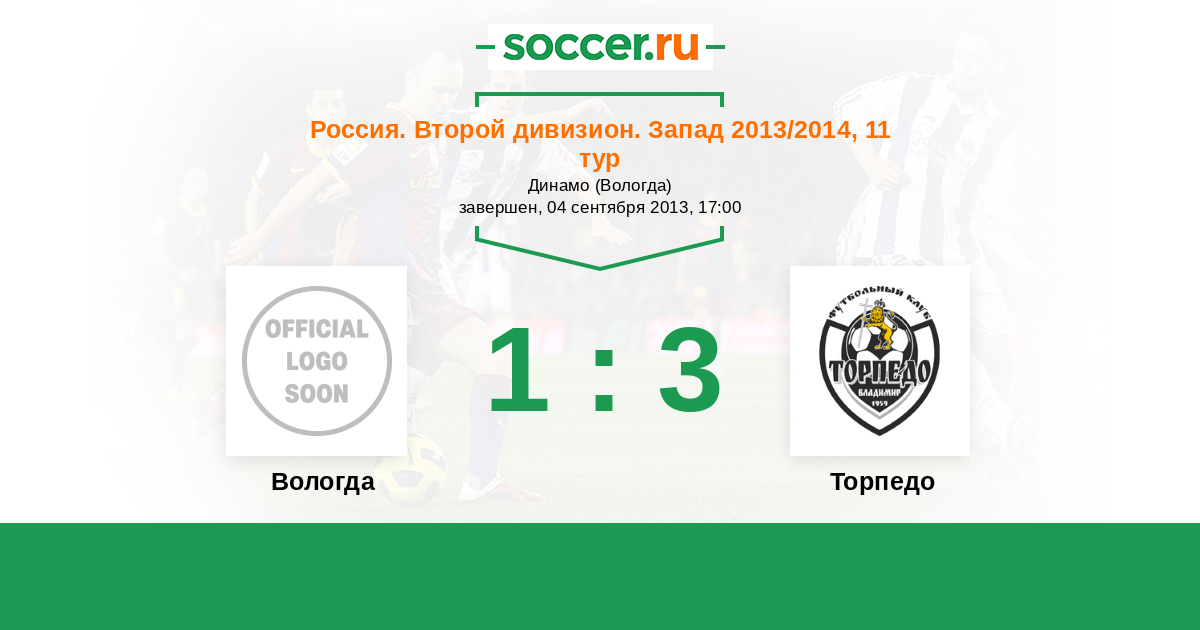 Россия. Вторая лига. Группа 2 19.04.2014 Торпедо Логотип футбольный клуб Торпедо (Владимир) 2:3 Логотип футбольный клуб Вологда Вологда
