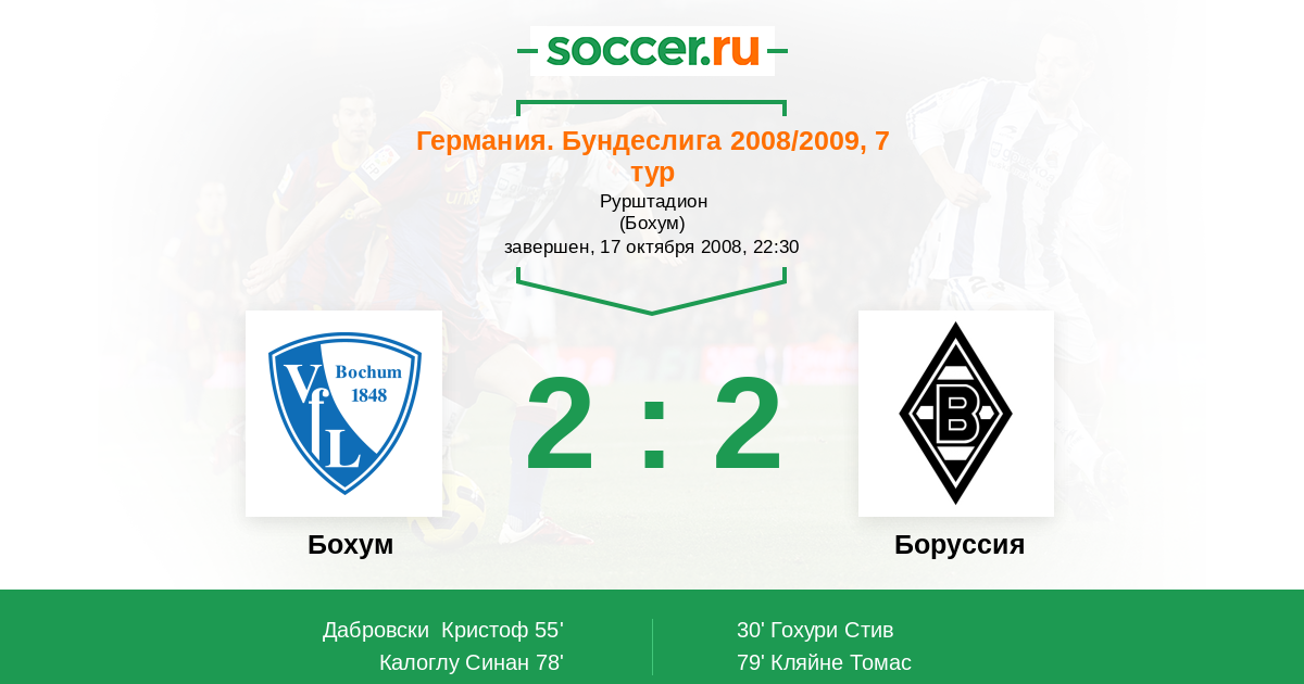 Протокол матча Бохум против Боруссия