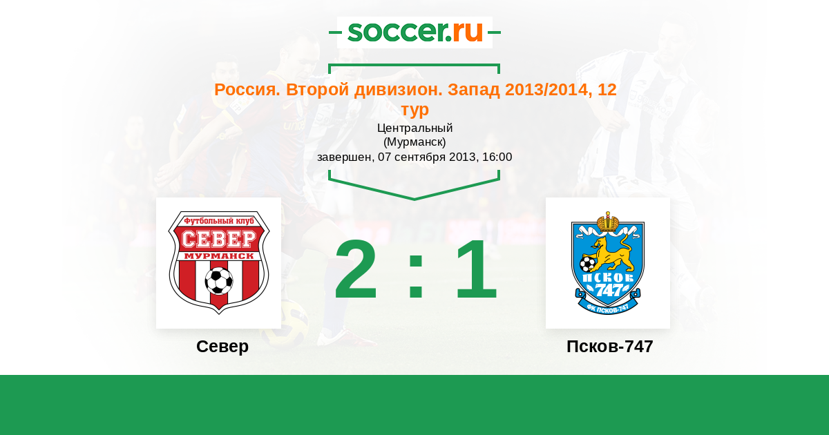 Россия. Вторая лига. Группа 2 14.07.2011 Север Логотип футбольный клуб Север (Мурманск) 4:3 Логотип футбольный клуб Псков-747 Псков-747