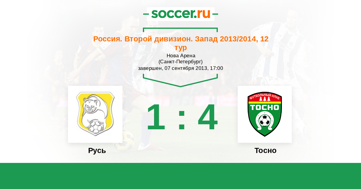 Россия. Вторая лига. Группа 2 22.04.2014 Тосно   3:0 Логотип футбольный клуб Русь (Санкт-Петербург) Русь