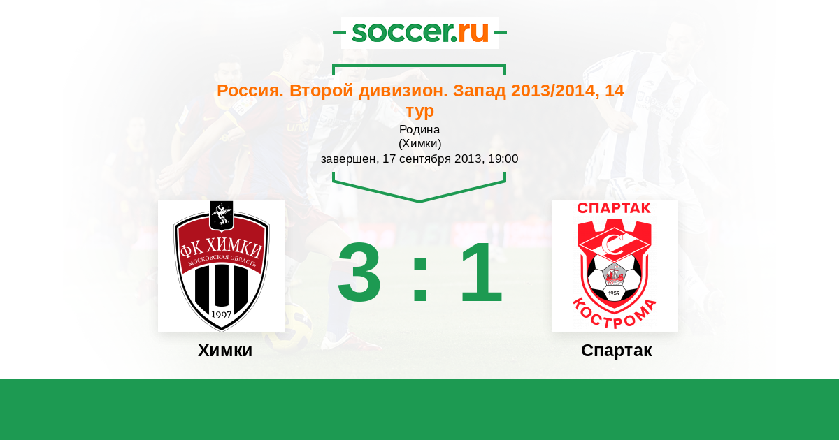 Россия. Вторая лига. Группа 2 05.11.2013 Спартак Кострома Логотип футбольный клуб Спартак Кострома 0:1 Логотип футбольный клуб Химки Химки
