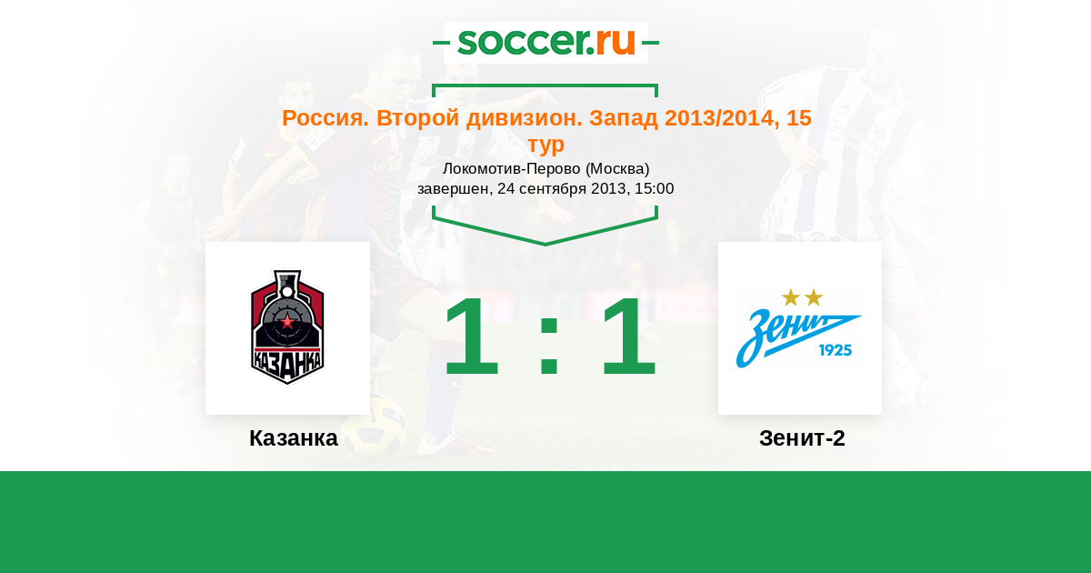 Россия. Вторая лига. Группа 2 24.10.2013 Зенит-2 Логотип футбольный клуб Зенит-2 (Санкт-Петербург) 1:0 Логотип футбольный клуб Локомотив-2 (Москва) Локомотив-2
