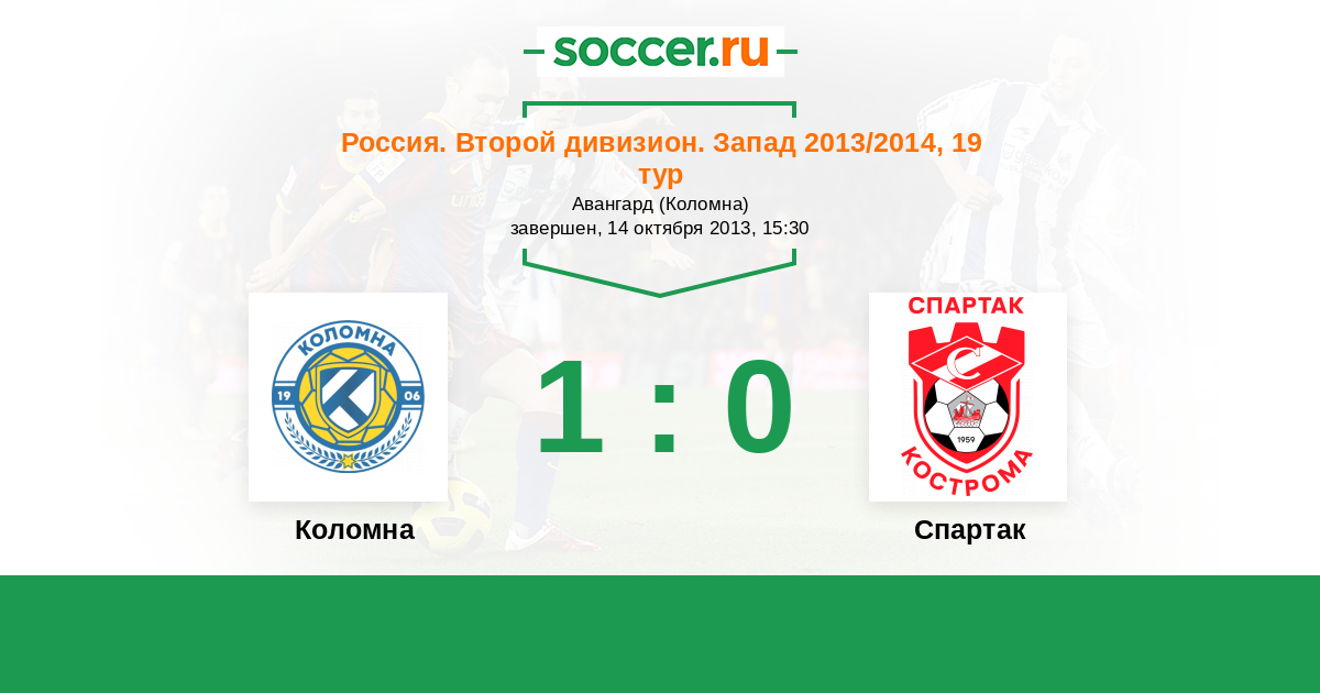 Россия. Вторая лига. Группа 2 04.10.2013 Спартак Кострома Логотип футбольный клуб Спартак Кострома 3:0 Логотип футбольный клуб Коломна Коломна