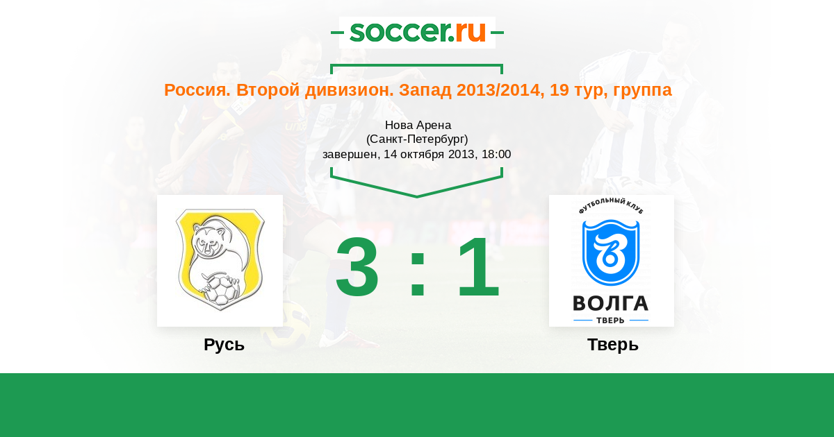 Россия. Вторая лига. Группа 2 04.10.2013 Тверь Логотип футбольный клуб Тверь 1:0 Логотип футбольный клуб Русь (Санкт-Петербург) Русь