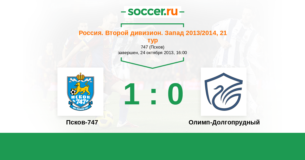 Россия. Вторая лига. Группа 2 11.10.2012 Псков-747 Логотип футбольный клуб Псков-747 4:0 Логотип футбольный клуб Долгопрудный Долгопрудный