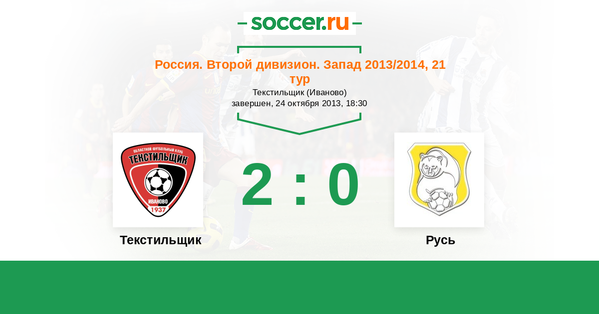 Россия. Вторая лига. Группа 2 24.09.2013 Русь Логотип футбольный клуб Русь (Санкт-Петербург) 0:1 Логотип футбольный клуб Текстильщик (Иваново) Текстильщик